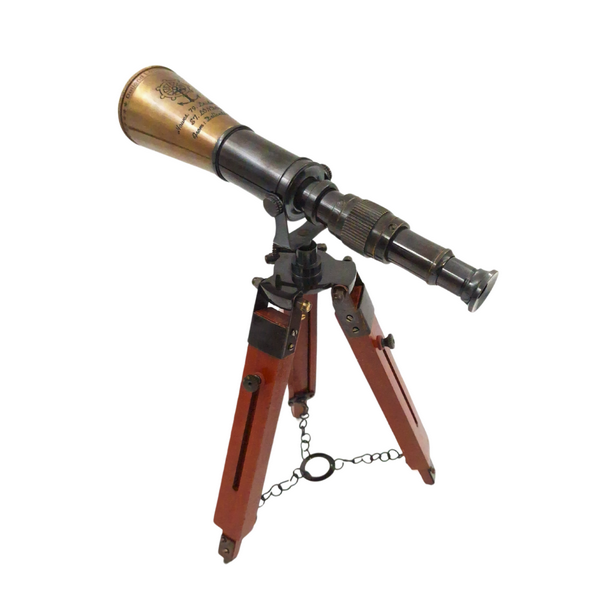 - Elegancka mosiężna luneta na regulowanym trójnogu