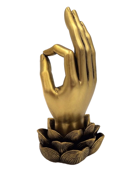 Elegancka figurka przedstawiająca mudrę OM to nie tylko ozdoba, ale także symbol duchowej harmonii i spokoju. Jej złoty kolor i nowoczesny design doskonale wpisują się w eleganckie aranżacje, wprowadzając do wnętrza atmosferę głębokiego relaksu i równowagi. Mudra OM, będąca jednym z najważniejszych gestów w jodze i medytacji, stanowi piękny akcent dekoracyjny, który zachwyci każdego miłośnika duchowości i estetyki.