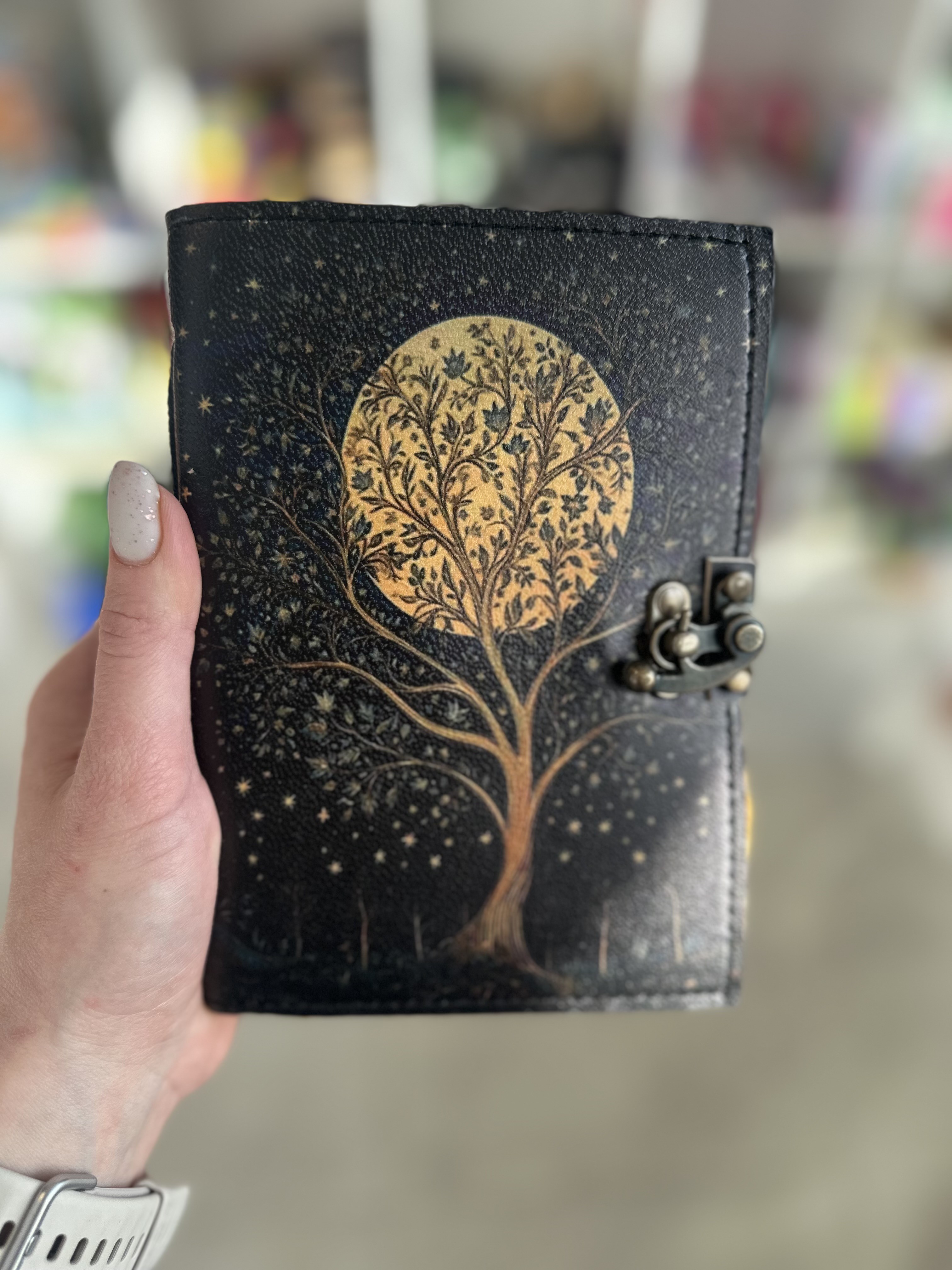 ✅ Artystyczny motyw drzewa i księżyca – klimat retro i wyjątkowy styl.