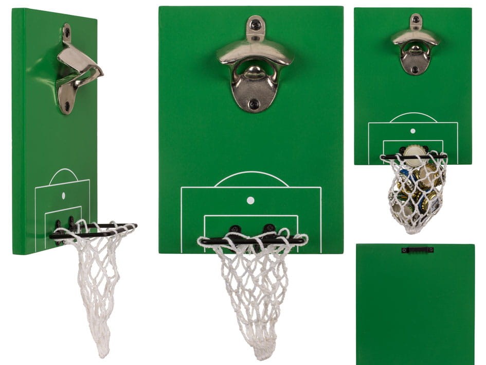 Otwieracz na ścianę dla fanów piłki i piwa. Kapsel trafia do bramki! Idealny prezent, ozdoba i zabawa w jednym – do kuchni, garażu i strefy kibica.