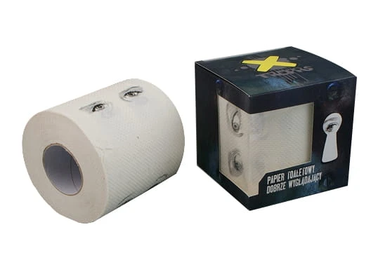 Dość nietypowy papier toaletowy, który na pewno poprawia humor w toalecie. U niektórych może spowodować chwilę niepewności. Papier ciągle Cię podgląda.