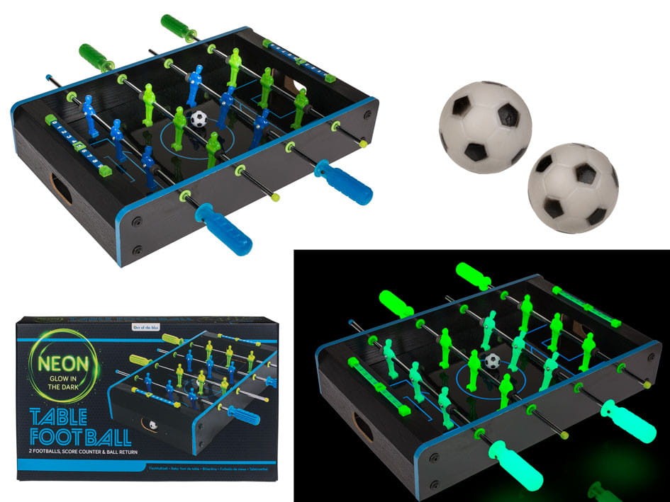 Blat do gry w piłkarzyki. Idealny prezent dla piłkomaniaków, aby szlifować swoje umiejętności nie tylko na boisku, ale także w domu. Dodatkowo piłkarzyki oraz rączki do gry świecą w ciemności. Super gra na rodzinne wieczory, jak i imprezy ze znajomymi.