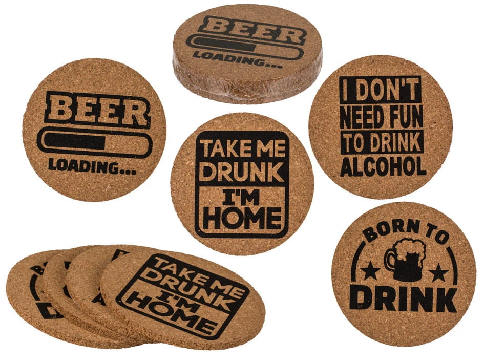 PODKŁADKI KORKOWE slogany piwne 4 szt POD SZKLANKĘ