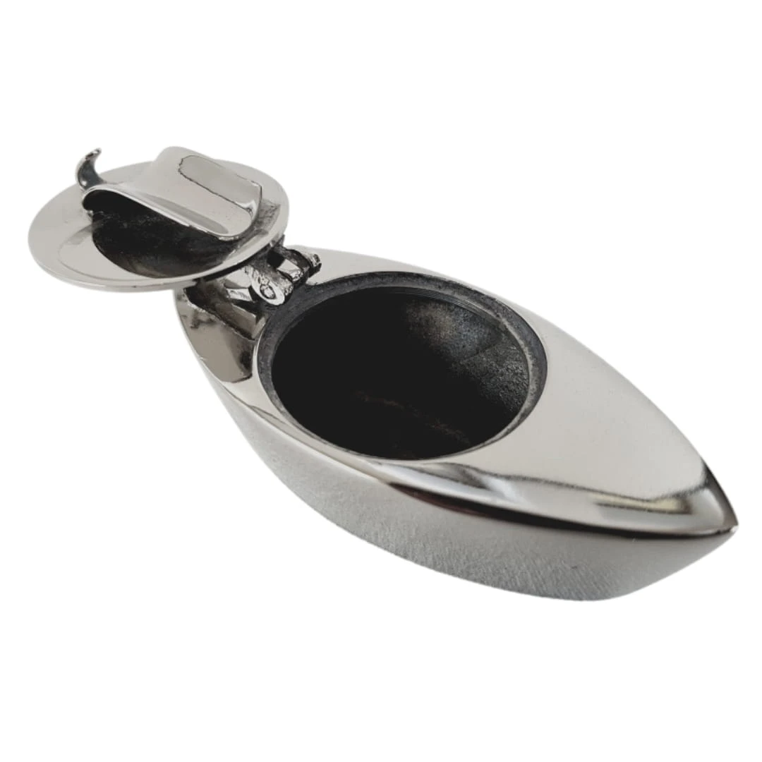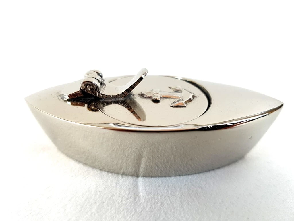 Popielniczka obok której z całą pewnością nikt nie przejdzie obojętnie. Mosiężna popielniczka w kształcie łódki, wykonana z ogromną dbałością o każdy detal. Otwierana na bok co pozwala na wygodne korzystanie bez potrzeby ciągłego opróżniania. Taki gadżet będzie doskonale się prezentował nie tylko w żeglarskim pubie.