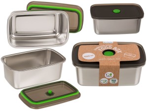 Pudełko do przechowywania żywności o pojemności aż 1000 ml. Pudełko wykonane ze stali nierdzewnej. Posiada szczelną pokrywkę. Można myć w zmywarce. Nie można używać w mikrofalówce.