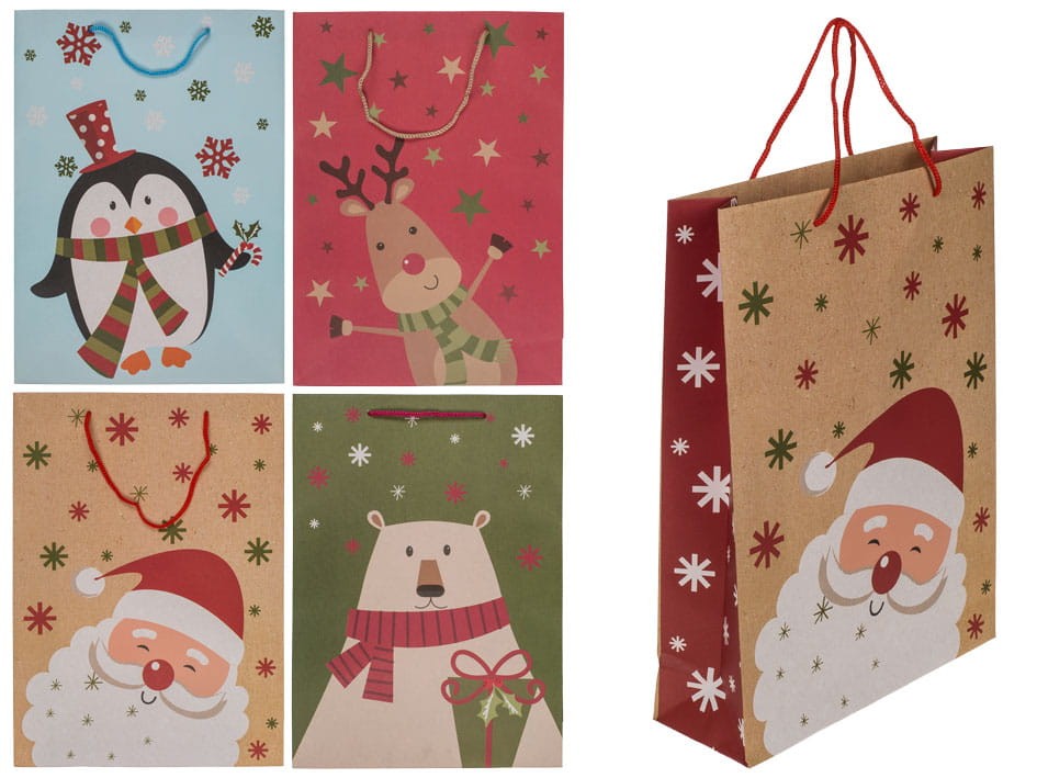 Elegancka papierowa torebka z motywem świątecznych przyjaciół to idealny sposób na zapakowanie prezentu w wyjątkowy, świąteczny sposób. Torebka ozdobiona wesołymi świątecznymi wzorami z pewnością przyciągnie uwagę każdego, komu wręczysz upominek. Doskonała do zapakowania zarówno większych, jak i mniejszych prezentów na Boże Narodzenie.