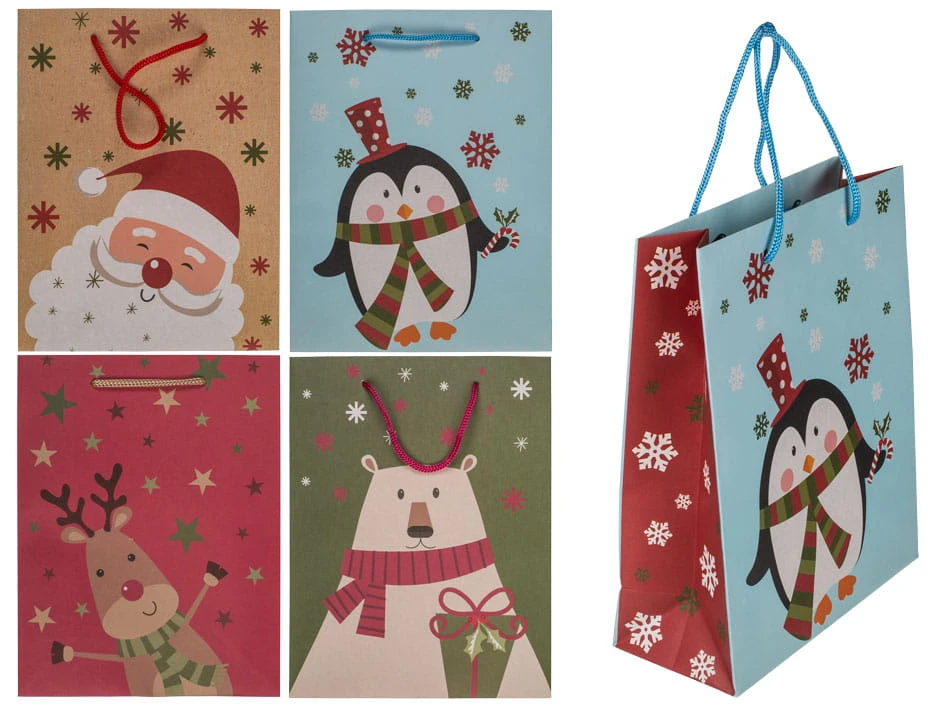 Papierowa torebka prezentowa "Świąteczni przyjaciele" to doskonały sposób na zapakowanie świątecznych podarunków. Z czterema różnymi wzorami do wyboru, pełnymi uroku i świątecznego klimatu, te torebki będą idealnym dodatkiem do każdego upominku. Dzięki niewielkiemu rozmiarowi, idealnie nadają się do pakowania drobiazgów, słodyczy lub biżuterii.