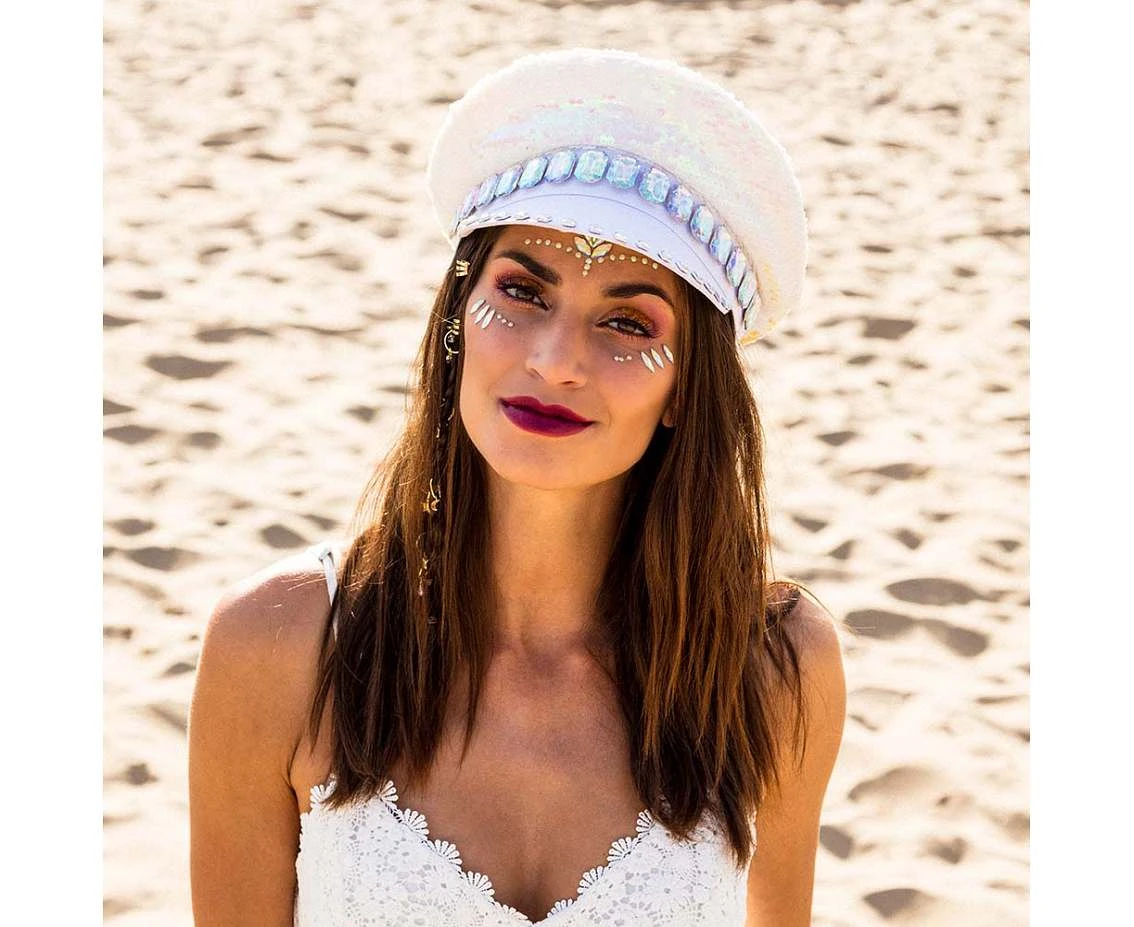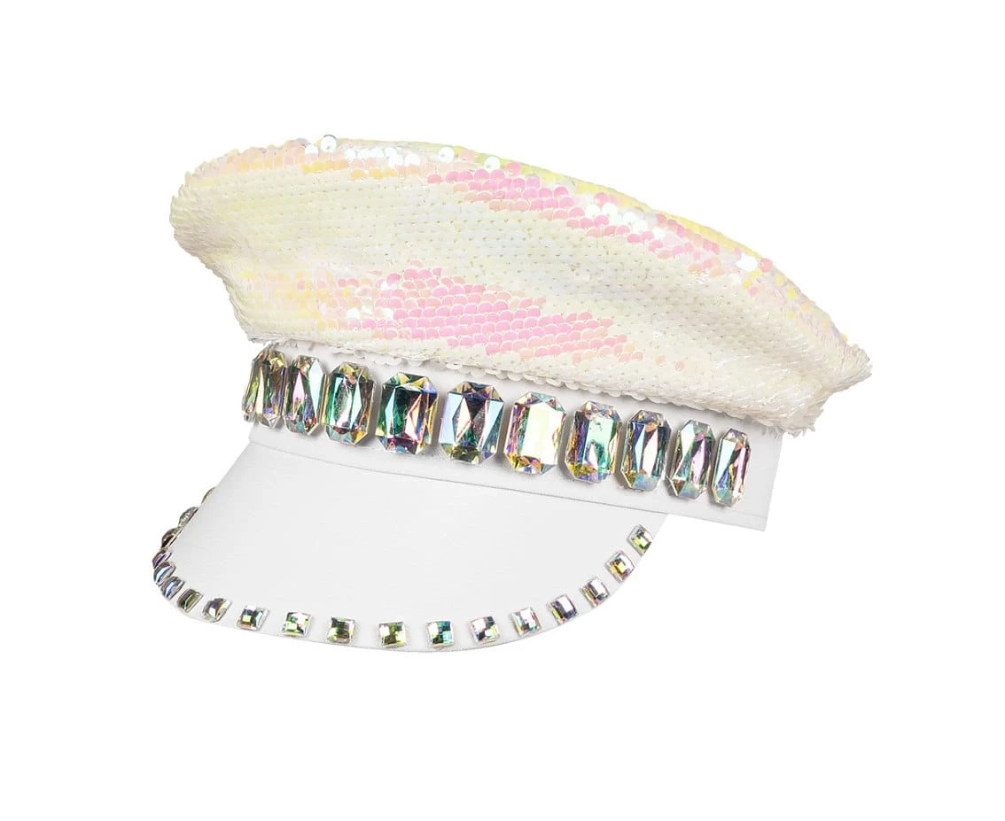 Perłowa Czapka z Daszkiem na Karnawał – Błyszcząca, Uniwersalna