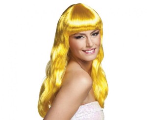 Żółta peruka Elegancka DziewczynaSzalone, żółte włosy! Kto by się odważył? Zostań najodważniejszą osobą całej imprezy i zaskocz wszystkich znajomych! Peruka jest idealna zarówno na imprezy w karnawale, jak także na domówki organizowane przez przyjaciół, z założeniem, że każda osoba ma przyjść przebrana :) Kolor: żółty Produkt przeznaczony głównie dla kobiet Materiał: Syntetyczny Rozmiar: uniwersalny