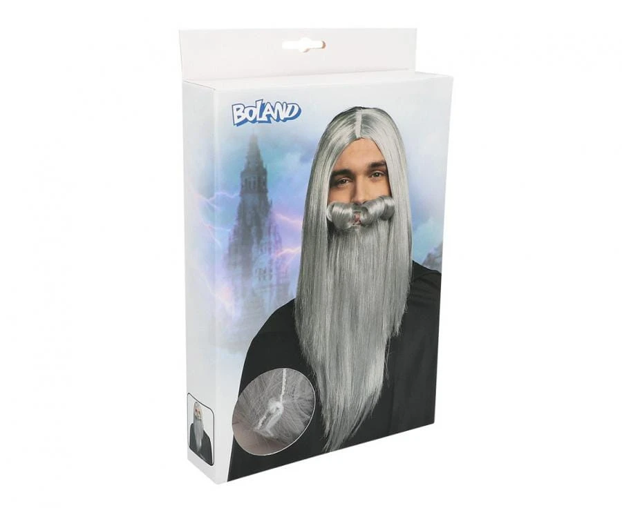 Peruka Czarownika z Brodą Przebranie Czarodzieja Strój Gandalfa Kostium