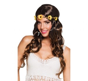 Peruka Joy Kręcone Brązowe Włosy z Opaską Hipis Retro Przebranie