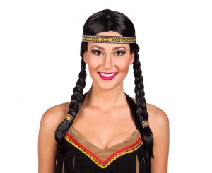 Peruka Kewanee z opaską Indianka z opaską Włosy warkoczyki
