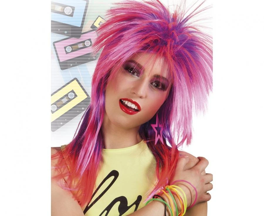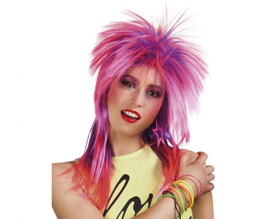 Peruka Kimberly Gwiazda Rocka Punka Różowa Fioletowa Lata 80 Karnawał