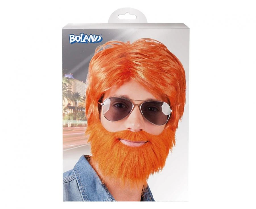 PERUKA MĘSKA DUDE, RUDA Z BRODĄ
