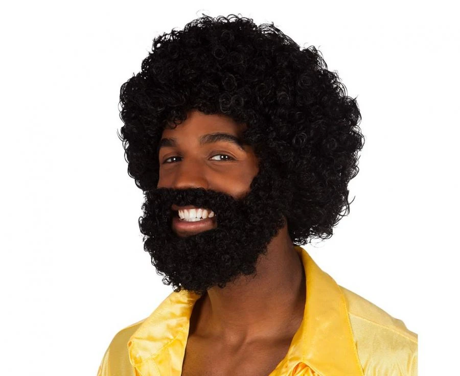 Peruka Rufus z brodą Kręcone czarne Włosy na Imprezę