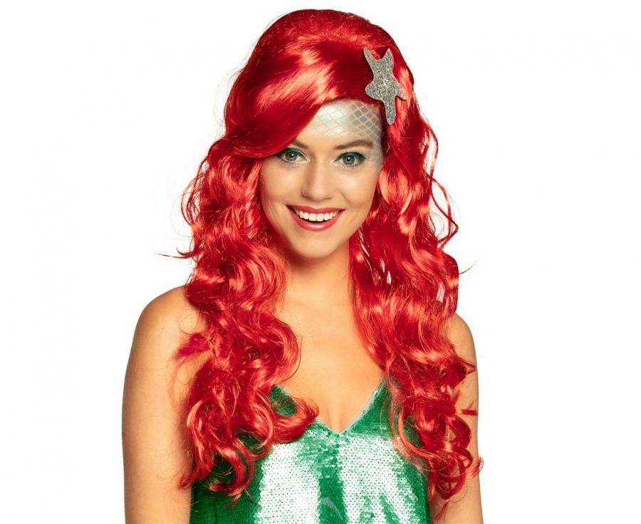 PERUKA SYRENA, KRĘCONE CZERWONE WŁOSY
