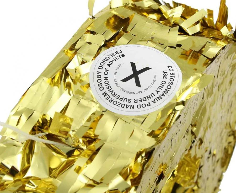 Świętuj znaczące półwiecze z piniatą "50" – idealnym akcentem na przyjęciu urodzinowym. Ta piniata, pokryta złotymi foliowymi paskami, przyciąga wzrok i dodaje uroczystego blasku. Dzięki niej, każdy może doświadczyć radosnego momentu rozbicia i odkrycia schowanych w środku niespodzianek, co sprawia, że jest to nie tylko ozdoba, ale i centrum rozrywki.