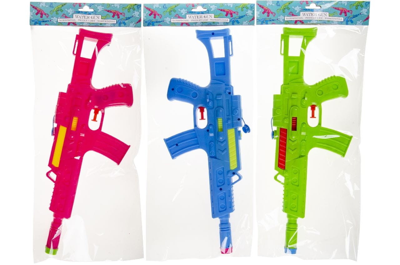 Duży, aż 38 cm plastikowy pistolet na wodę. Idealny do zabawy w lany poniedziałek lub w upalne letnie dni. dostępny w dwóch kolorach. Pistolet to imitacja karabinka M16. Wysyłamy jako mix kolorów.