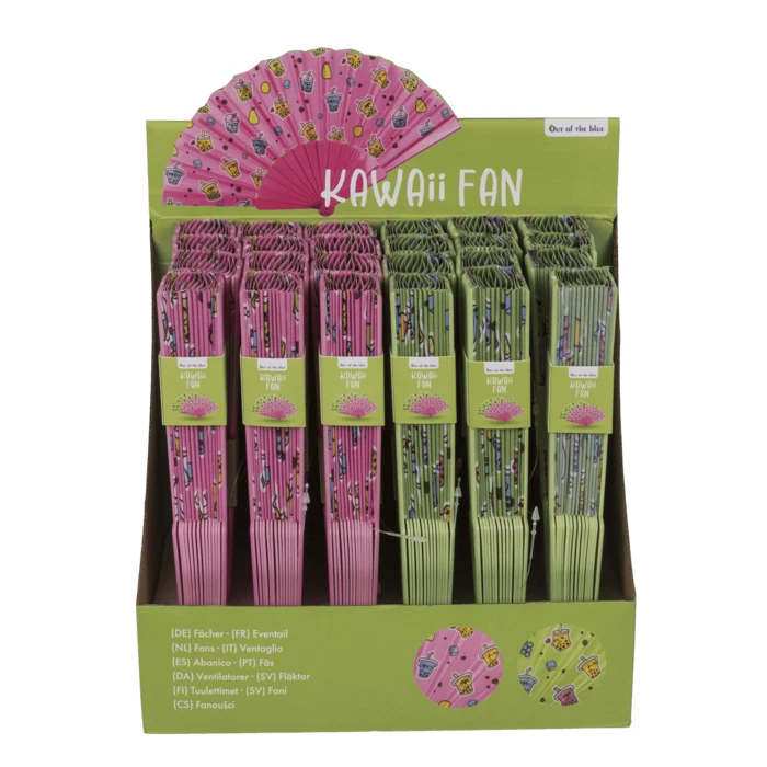 Dostępny w dwóch kolorach – soczystym zielonym i uroczo różowym – wachlarz z nadrukiem Bubble Tea to połączenie funkcjonalności i stylu. Jego kompaktowa konstrukcja sprawia, że zmieści się w każdej torbie czy plecaku, co czyni go doskonałym towarzyszem na plaży, festiwalu, wakacjach czy podczas codziennych podróży komunikacją miejską.