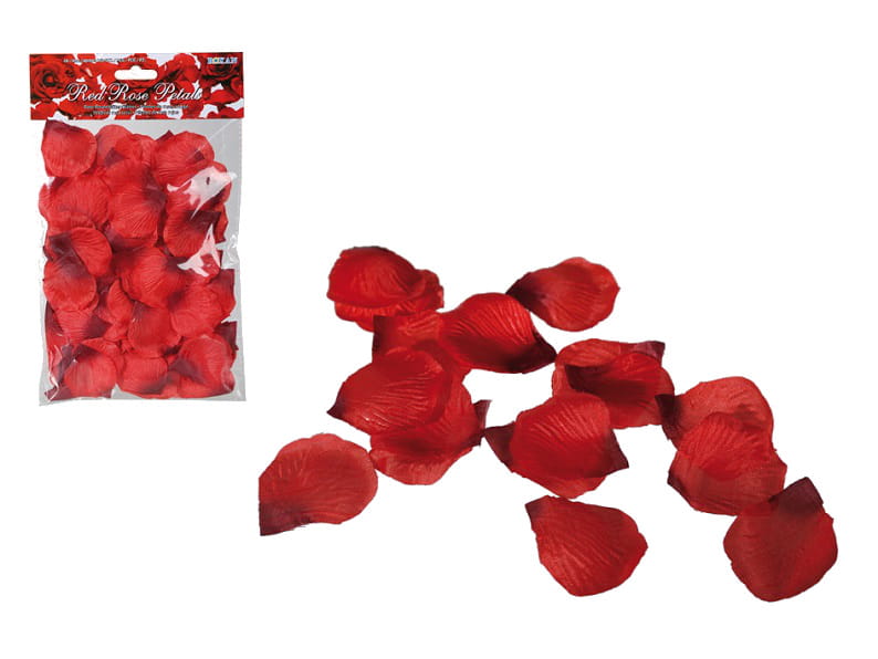 Płatki róży wykrojone z czerwonego materiału. Idealnie nadają się do przystrojenia prezentu lub pokoju w trakcie romantycznych chwil. W opakowaniu znajduje się około 150 płatków.
