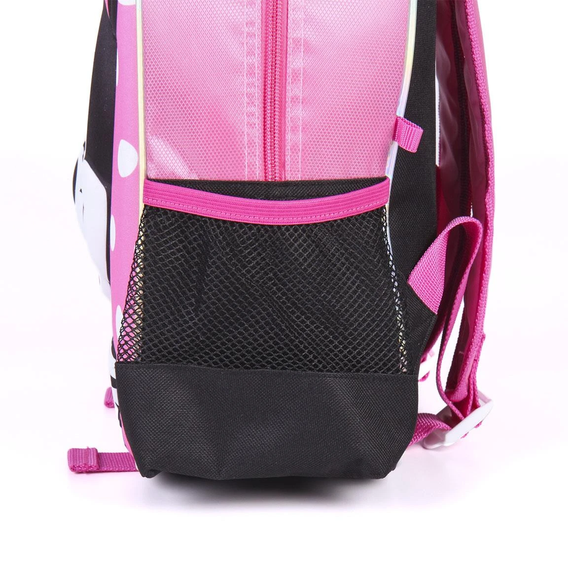 Śliczny plecak dziecięcy we wzorze graficznym Myszka Minnie. Plecak usztywniany z wizerunkiem Myszki Minnie w formie 3D. Wygodne regulowane szelki oraz uchwyt do zawieszenia lub przeniesienia. Posiada boczną kieszonkę np. do umieszczenia chusteczek czy butelki z napojem. Doskonały plecak dla maniaków Minnie. Super do przedszkola lub na wycieczkę.