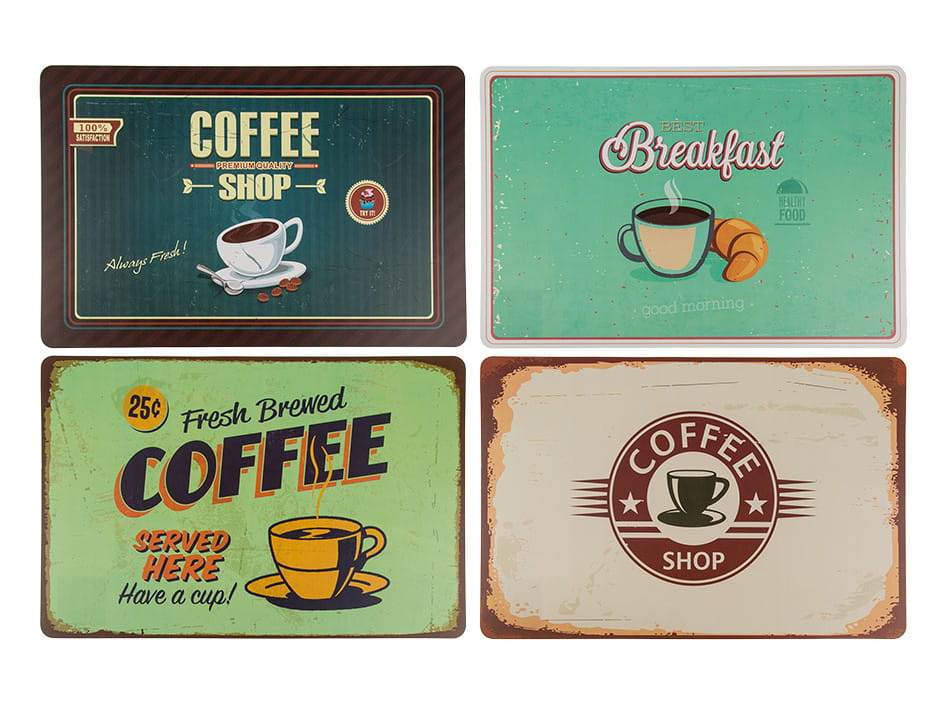 Podkładka na stół o wymiarach 43,5 x 28,5 cm, wykonana z polipropylenu. Może służyć jako ozdoba lub jako ochrona stołu przed gorącymi naczyniami, które na nim stawiamy. Dostępne różne kolory w kawowych wzorach. Wysyłamy jako mix wzorów.