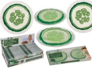 - Poduszeczki spa do oczu w designie ogórka, oferujące terapię na ciepło i zimno