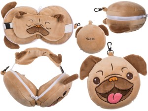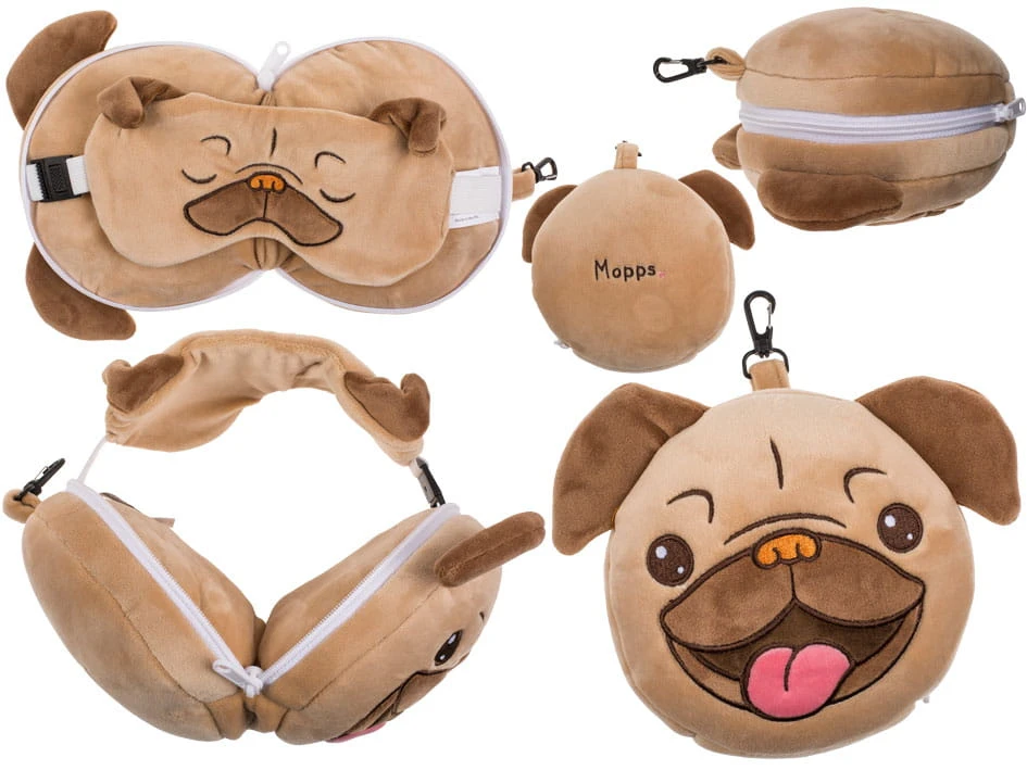 Poduszka podróżna dla dzieci i maska na oczy Mops