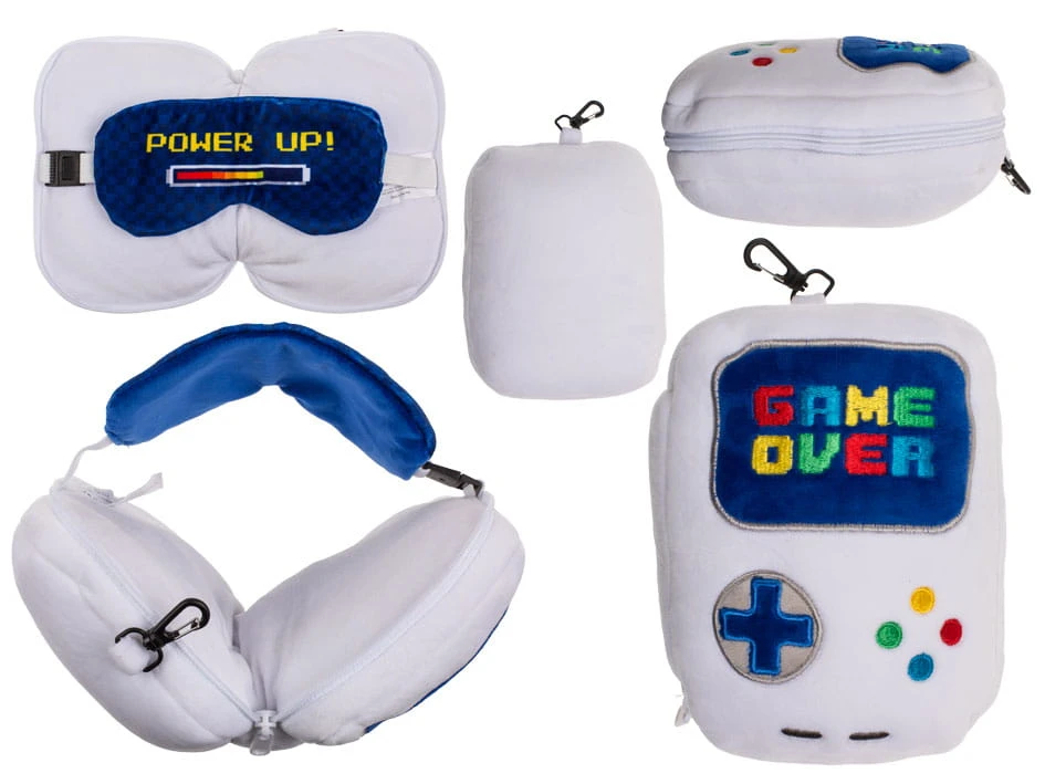 Rewelacyjna poduszka podróżna z milutkiego pluszu. Poduszka wygląda bardzo uroczo i wyróżnia się na tle innych poduszek podróżnych. Dodatkowo, posiada wbudowaną maskę na oczy, która chroni przed światłem i pozwala na lepsze zrelaksowanie się podczas snu w trudnych warunkach oświetleniowych. Zasuwana na suwak, z karabińczykiem, który pozwoli ją przypiąć do torby, plecaka. Pozwala na relaks w samochodzie, pociągu, samolocie.