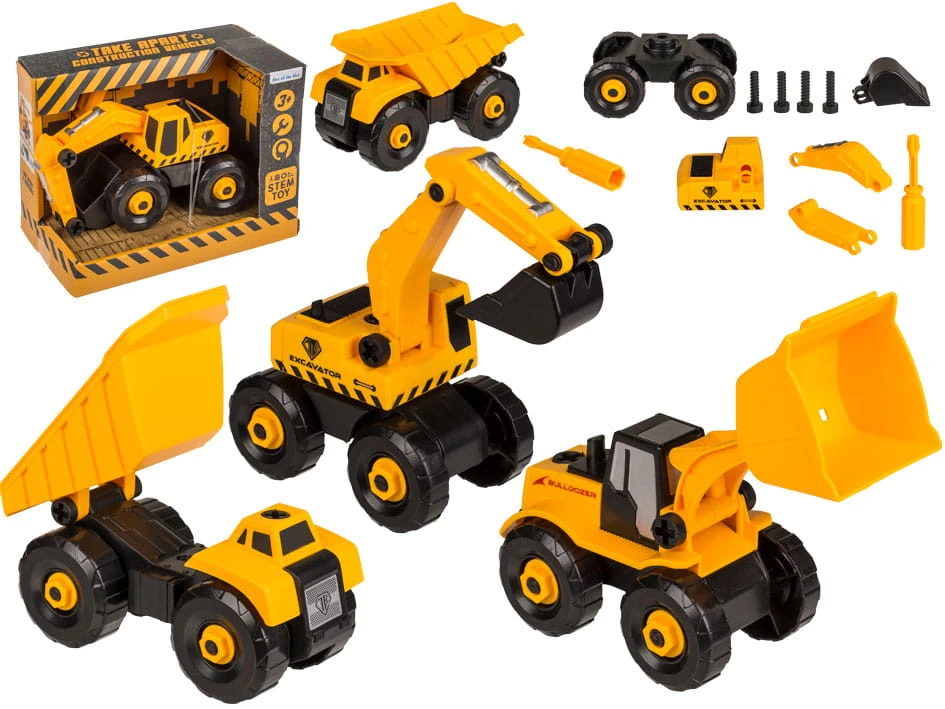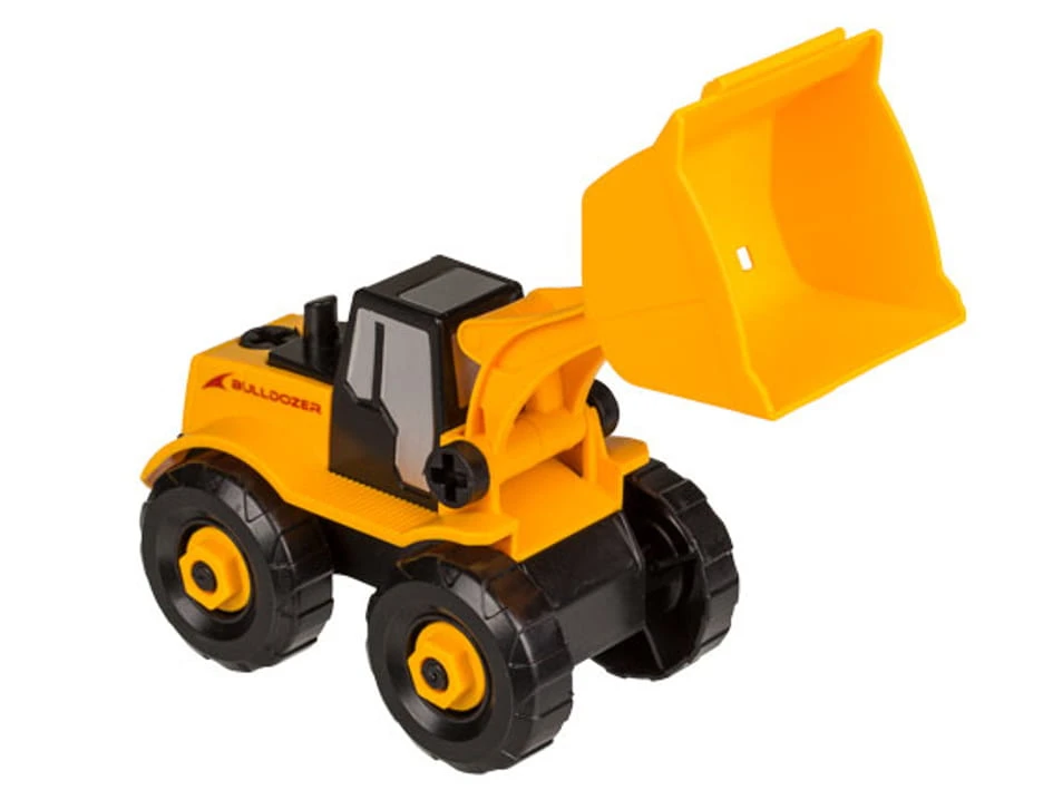 Części pojazdu łączymy śrubami za pomocą znajdującego się w zestawie śrubokręta. Dzięki temu dziecko może zbudować własny, spersonalizowany pojazd i nauczyć się, jak działa maszyna budowlana.