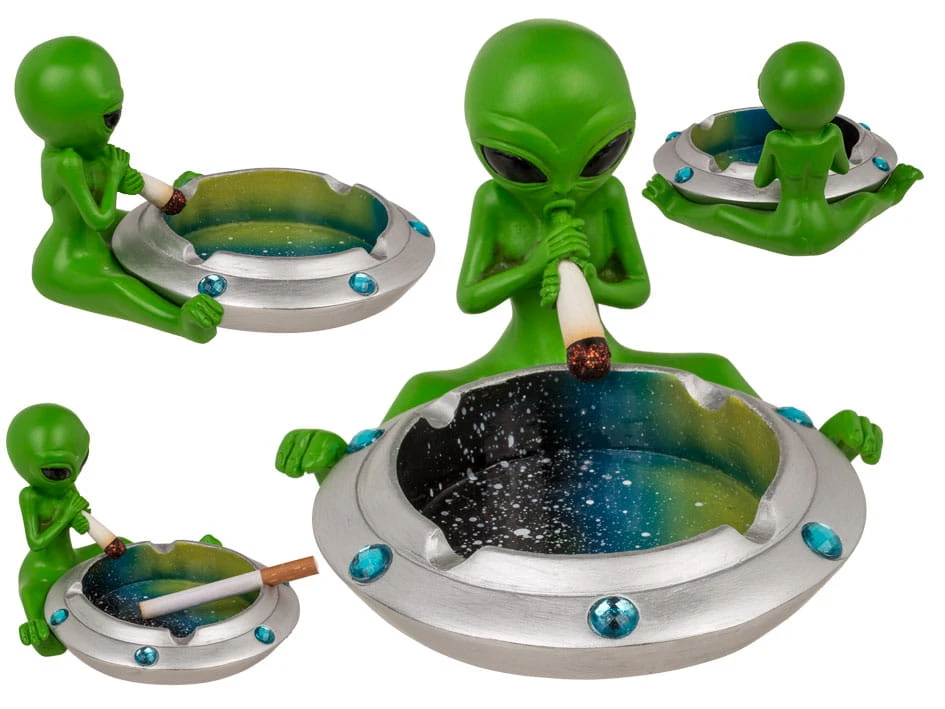 Ta nietypowa popielniczka przeniesie Cię prosto w odległe zakątki kosmosu, łącząc w sobie humorystyczny motyw przybysza z obcych cywilizacji i praktyczne funkcje. Wykonana z trwałego polyresinu, jest nie tylko wyjątkowym akcesorium dla palaczy, ale także ozdobą, która z pewnością przyciągnie uwagę Twoich gości.