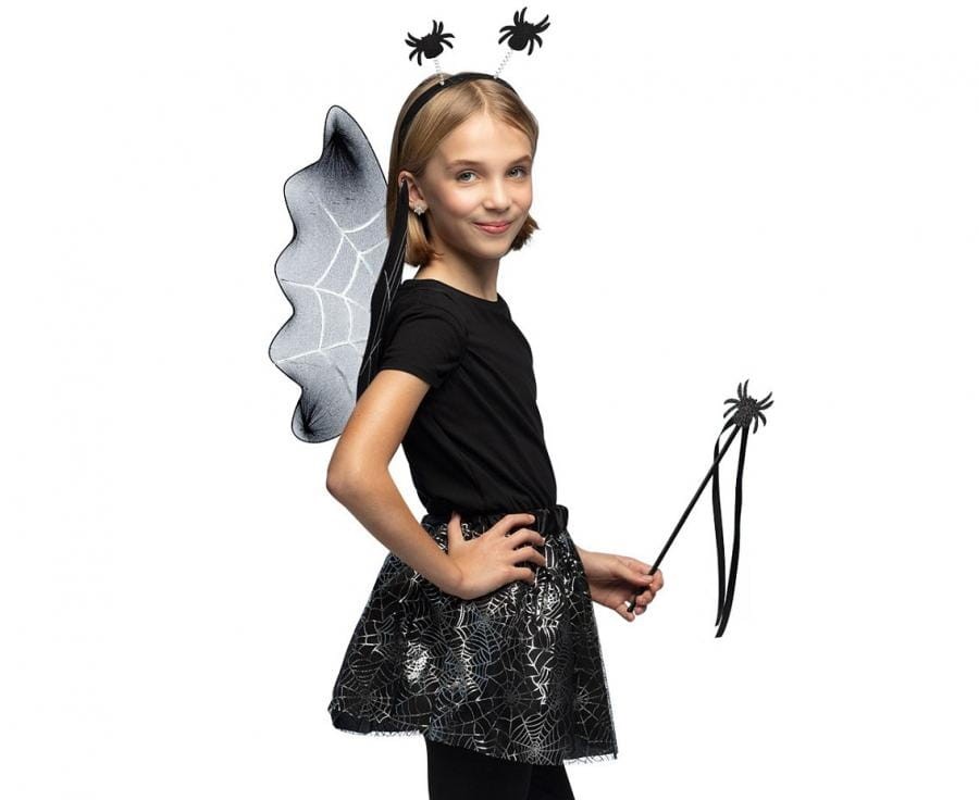 Przebranie Pająka dla dzieci Skrzydlata Pajęczyca Strój Pająk Kostium spódnica opaska różdżka skrzydła