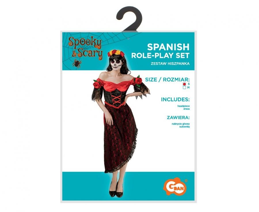 Przebranie na Halloween Hiszpanka hiszpańska sukienka nakrycie głowy sukienka rozm S