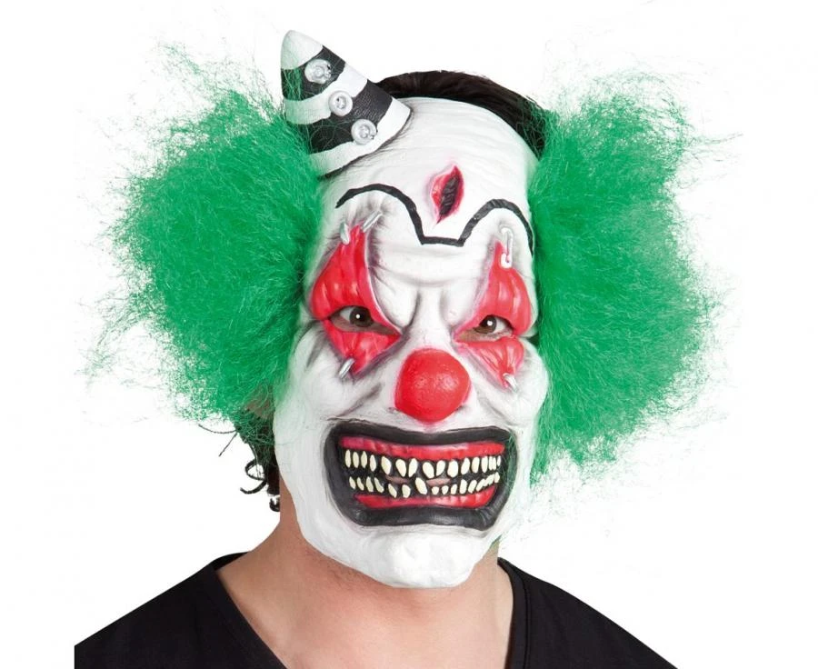 Przerażająca maska lateksowa – klaun z zielonymi włosami