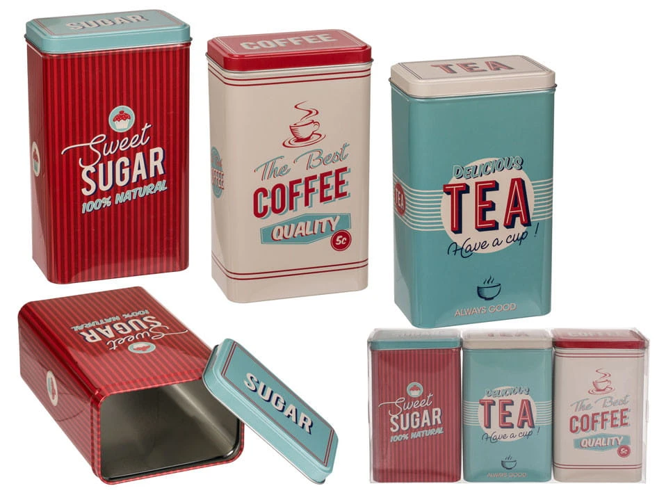 Specyfikacja produktu - Puszki na kawę herbatę i cukier - retro Pojemniki