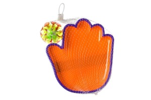 Plastikowa plansza do łapania w kształcie wielkiej dłoni, w zestawie z piłeczką z przyssawkami. Zestaw pozwala na atrakcyjną zabawę w rzucanie piłeczką. Łatwe i wygodne do zabrania ze sobą na wyjazd lub wakacje. Wysyłamy jako mix wzorów.