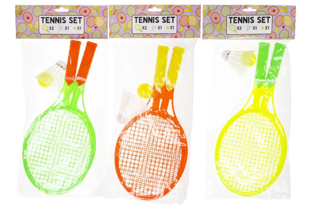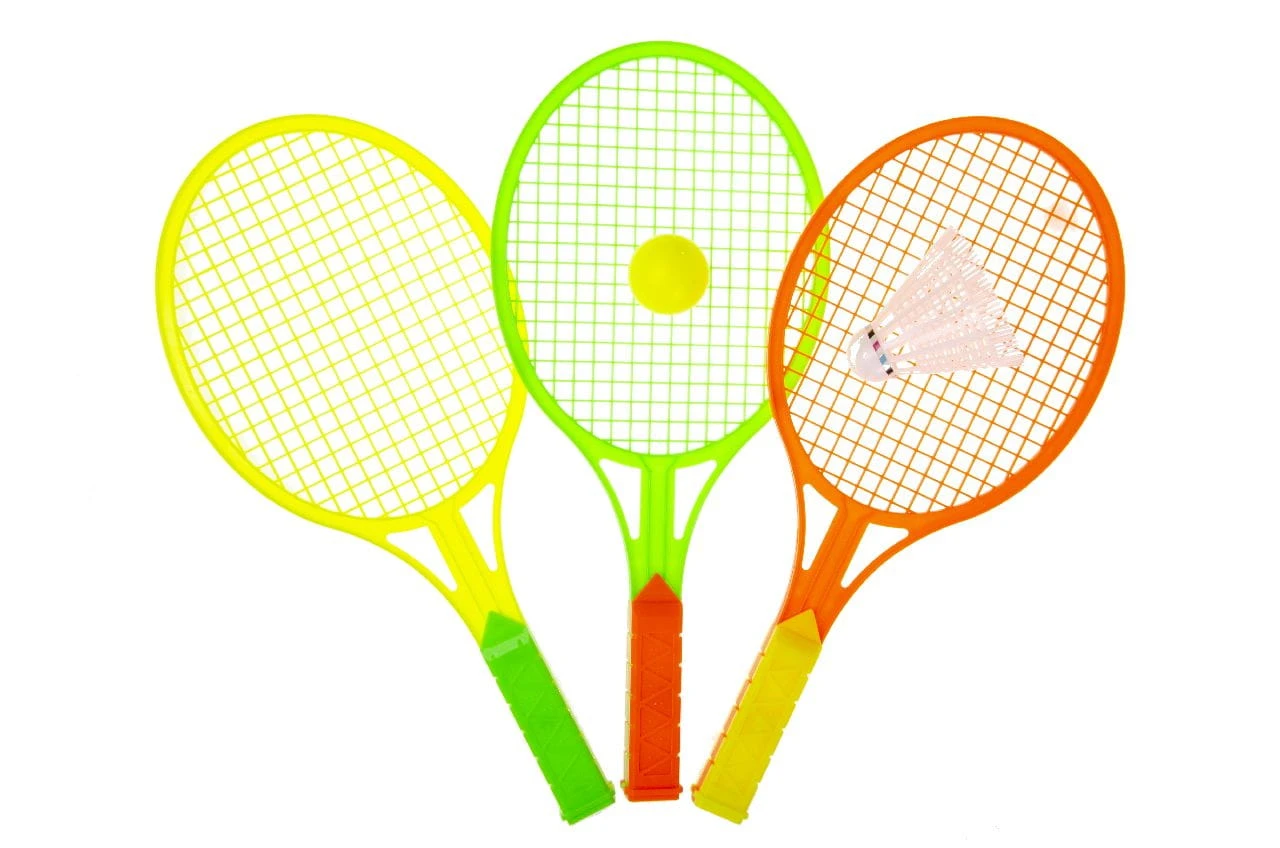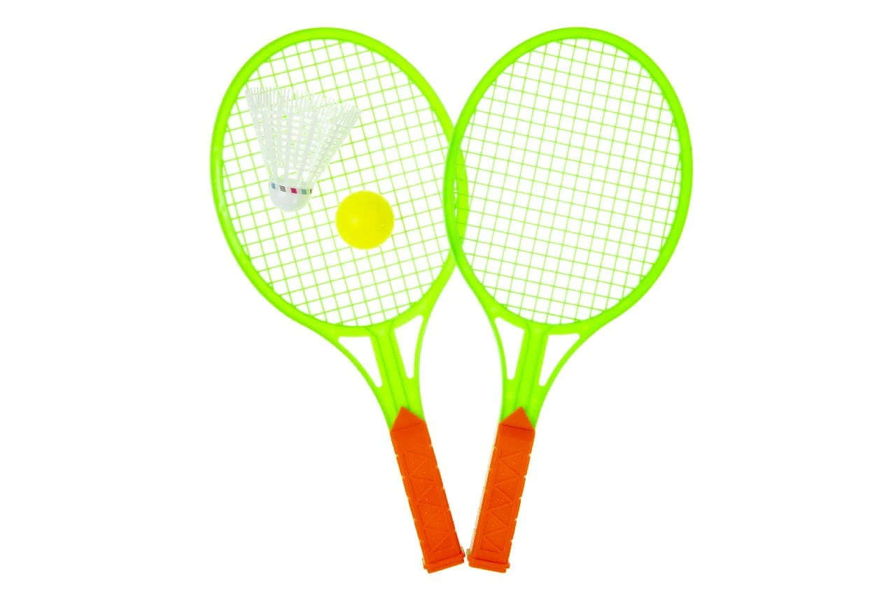 Zestaw dziecięcy do badmintona, tenisa składający się z 2 rakietek, piłeczki i lotki. Zestaw do rekreacyjnej gry w badmintona dla dzieci. Idealnie sprawdzi się podczas wypoczynku na świeżym powietrzu. Żywe kolory z pewnością przykują uwagę każdego dziecka. Gra w tenisa to fantastyczna forma spędzana wolnego czasu na zewnątrz, ale także w domu. Wersja dla mniejszych dzieci - piłeczka jest lekka, więc dziecko nie uderzy się nią.