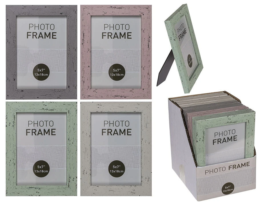 Ramka na zdjęcie o wymiarach 13 x 18 cm. Plastikowa ramka w pastelowych kolorach. Wygląd imituje stare drewno. Dostępne różne kolory. Wysyłamy jako mix.