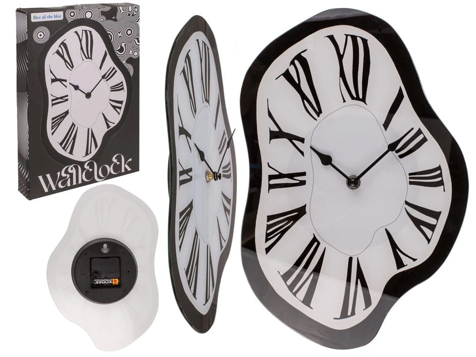 Zegar ścienny o surrealistycznym kształcie. Idealny do nowoczesnych wnętrz i prezentów. Dodaj swojej przestrzeni artystycznego charakteru!