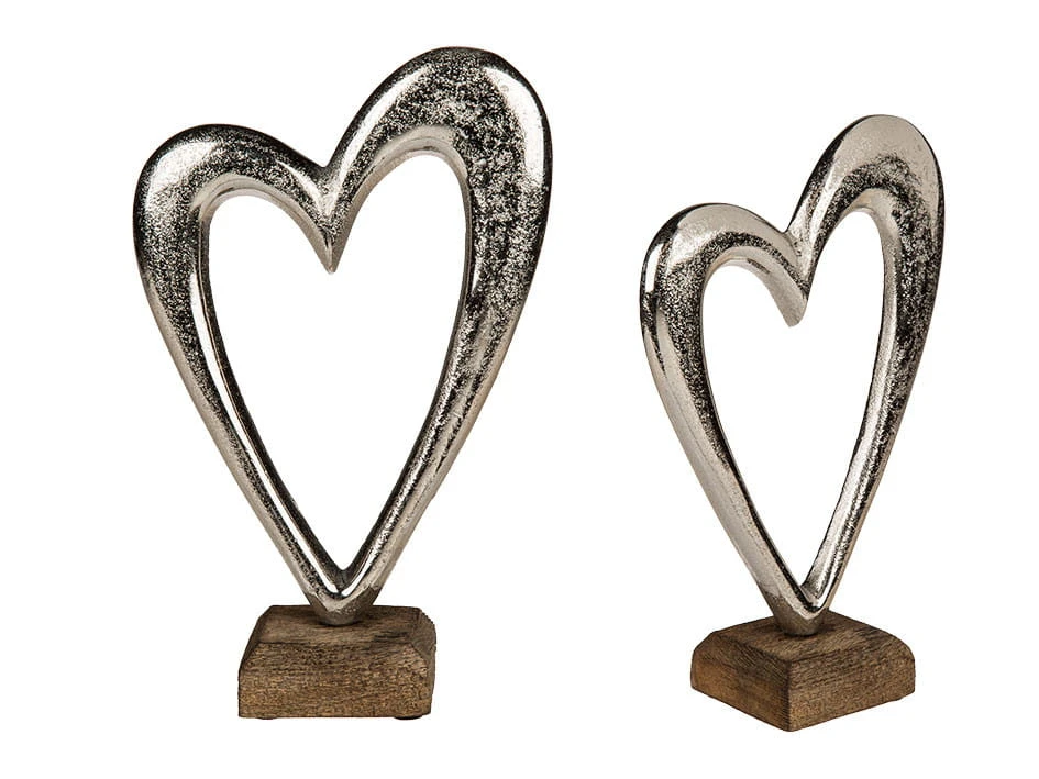 Doskonała ozdoba zarówno do salonu, jak i sypialni. Metalowe srebrne serce na drewnianej podstawie. Całość stylizowana w kierunku retro. Figurka serca może być wręczona jako prezent z okazji np. Walentynek, ale także jako urocza ozdoba do domu. To świetny pomysł na wyrażenie komuś wyrazów wdzięczności za pomoc.