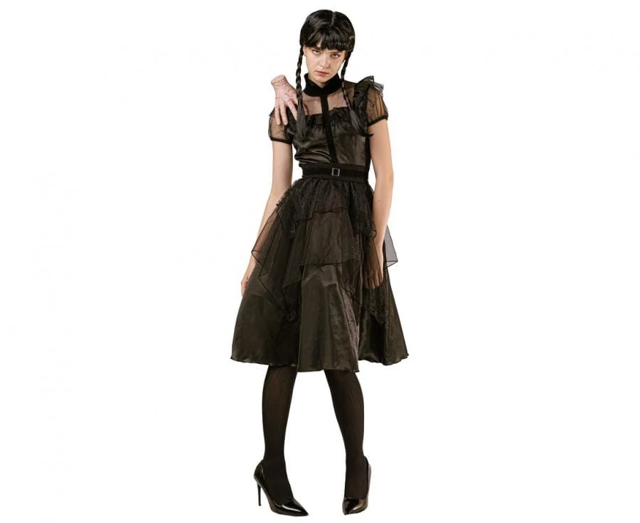 STRÓJ sukienka balowa z paskiem WEDNESDAY Gotycka Uczennica HALLOWEEN rozm S