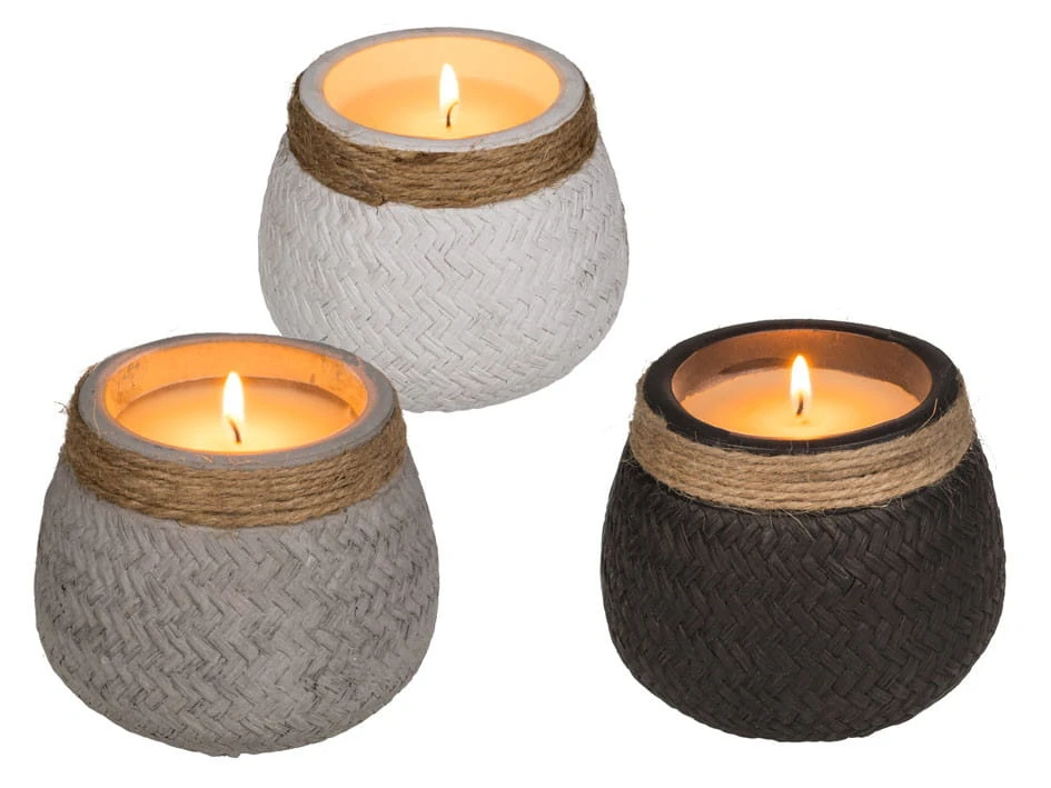 ŚWIECA w cementowej doniczce JUTA SZNUREK mix