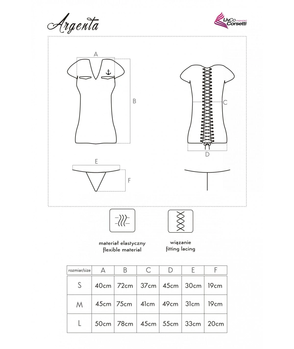 Koszulka na plecach jest wiązana niczym gorset na całej swojej długości, co pozwala na optymalne dopasowanie kostiumu do sylwetki i jednocześnie zalotnie odsłania fragmenty pleców i pośladków. Wszystko to razem tworzy kostium, który jest nie tylko wyjątkowo elegancki, ale także bardzo kobiecy i uwodzicielski.