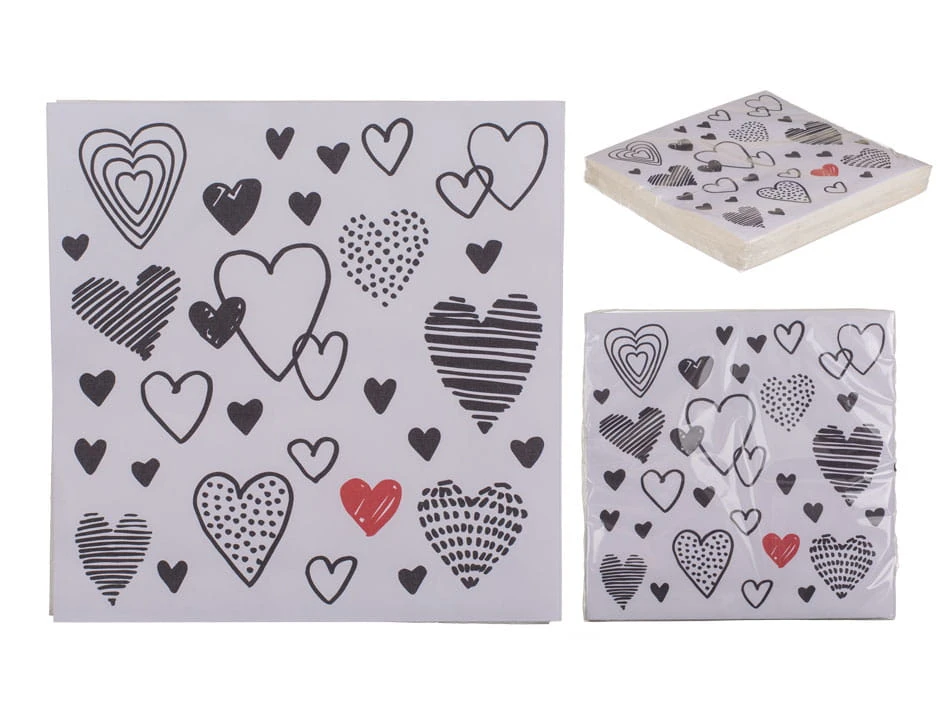 Serwetki serca papierowe na stół 20szt dekoracyjne