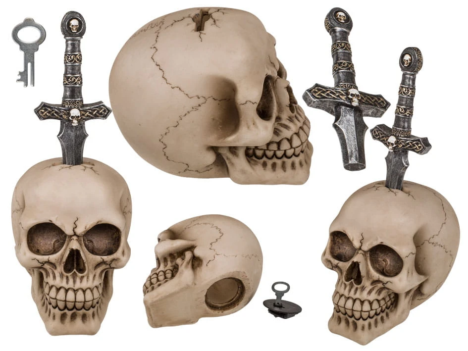 Skarbonka Czaszka z wbitym ostrzem Miecza gotycki styl Prezent