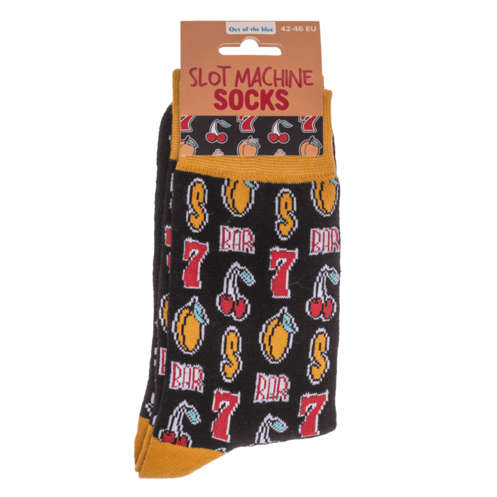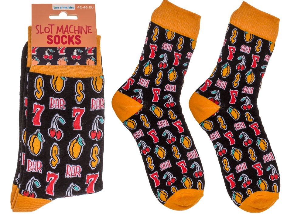 Kolorowe skarpetki z motywem slot machine. Rozmiar 42–46. Wygodne, elastyczne i z charakterem – idealne dla graczy, fanów kasyn i oryginalnych stylizacji.
