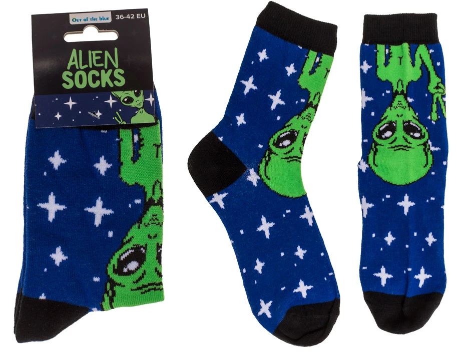 Zabawne skarpetki z motywem kosmity. Rozmiar 36–42, miękka bawełna, świetny prezent dla fanów sci-fi i tych, którzy lubią się wyróżniać.