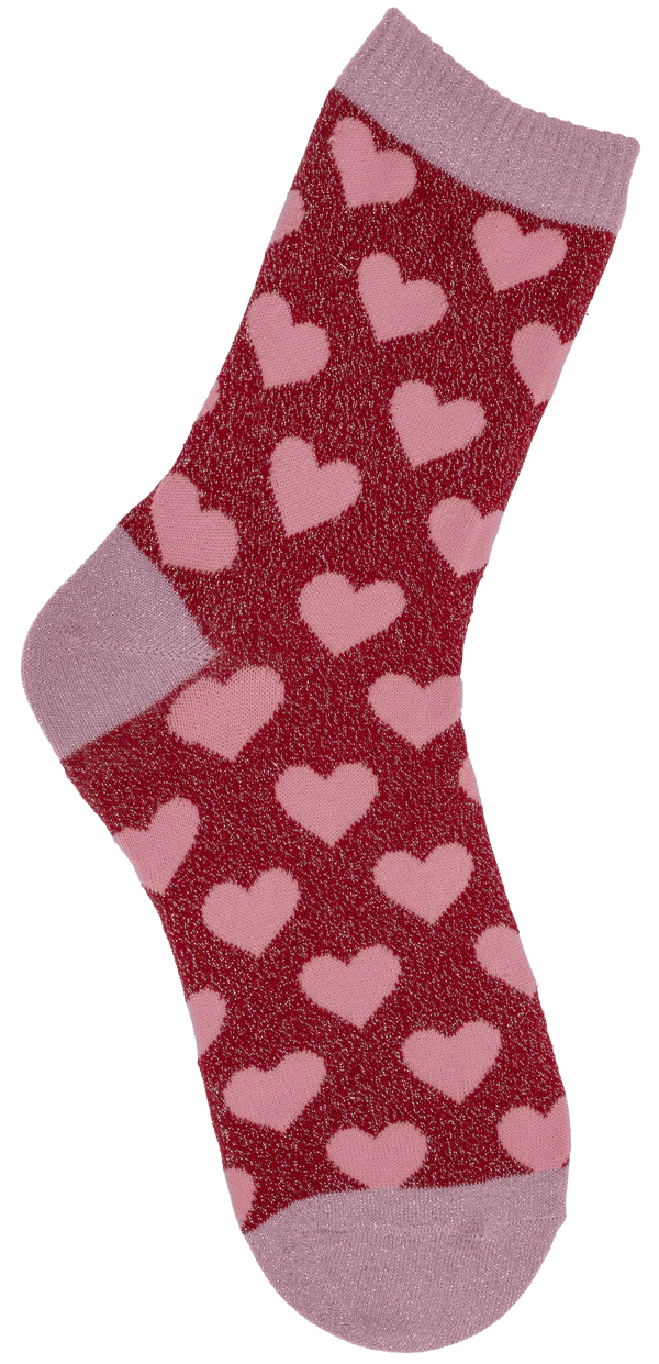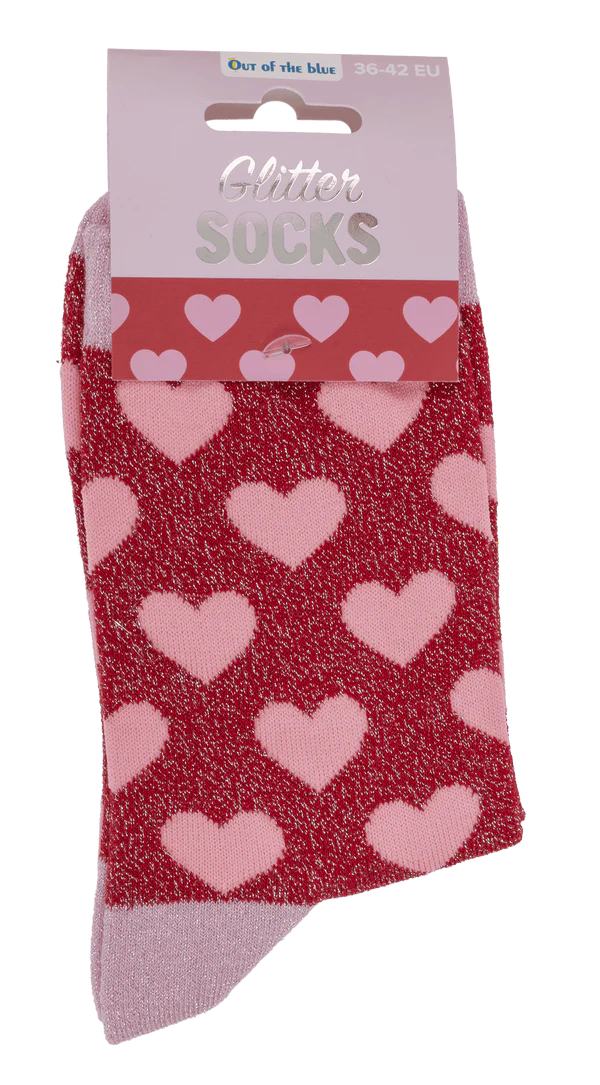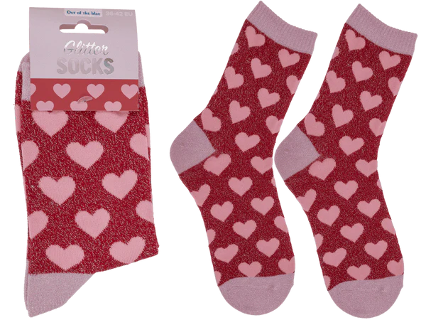 Skarpetki w Serca Czerwone Brokatowe - Skarpety na Walentynki Damskie 36-42