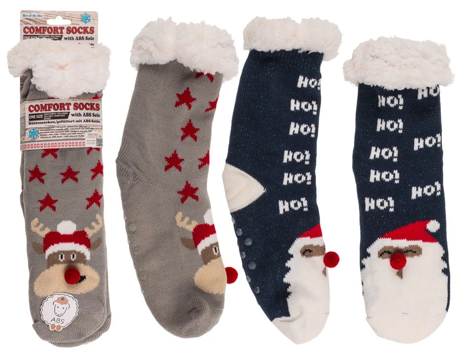 Ocieplane skarpety w świątecznym wzorze reniferka lub Świętego Mikołaja. Skarpety wyposażone w specjalny system ABS na spodzie stopy. Cudowny gadżet na zimowe chłodne wieczory. Umilą świąteczny czas. Wysyłamy jako mix wzorów.