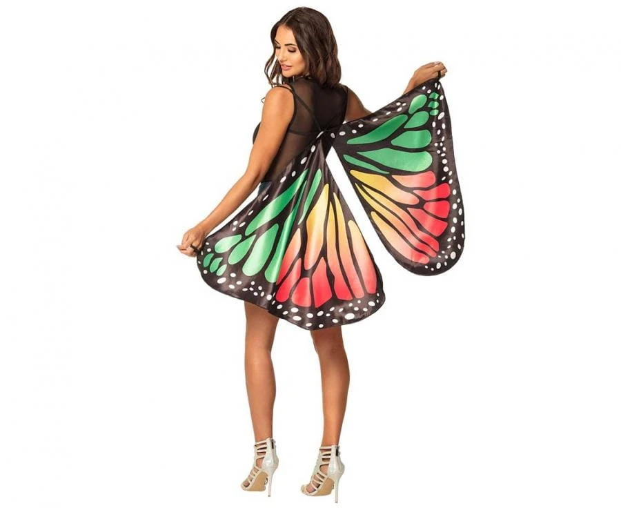 Wykonane z lekkiego materiału skrzydła w rozmiarze 83 × 130 cm pięknie się układają i poruszają wraz z ruchem, tworząc spektakularny efekt. Różnokolorowy wzór inspirowany motylim skrzydłem przyciąga uwagę i dodaje każdej stylizacji fantazji i lekkości.